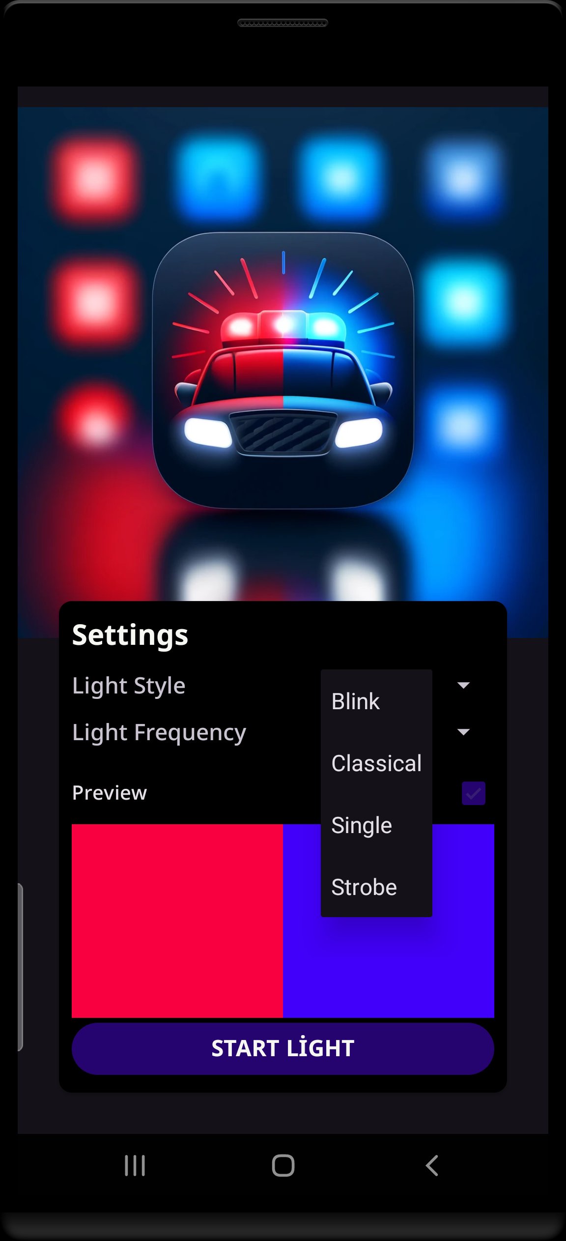 Get the most realistic police light experience right in your pocket! Our police light app is designed to turn your screen into a stunning display of police lights flashing, perfect for creating a captivating atmosphere for fun, parties, or any event. This app stands out with its authentic simulation and customization features.