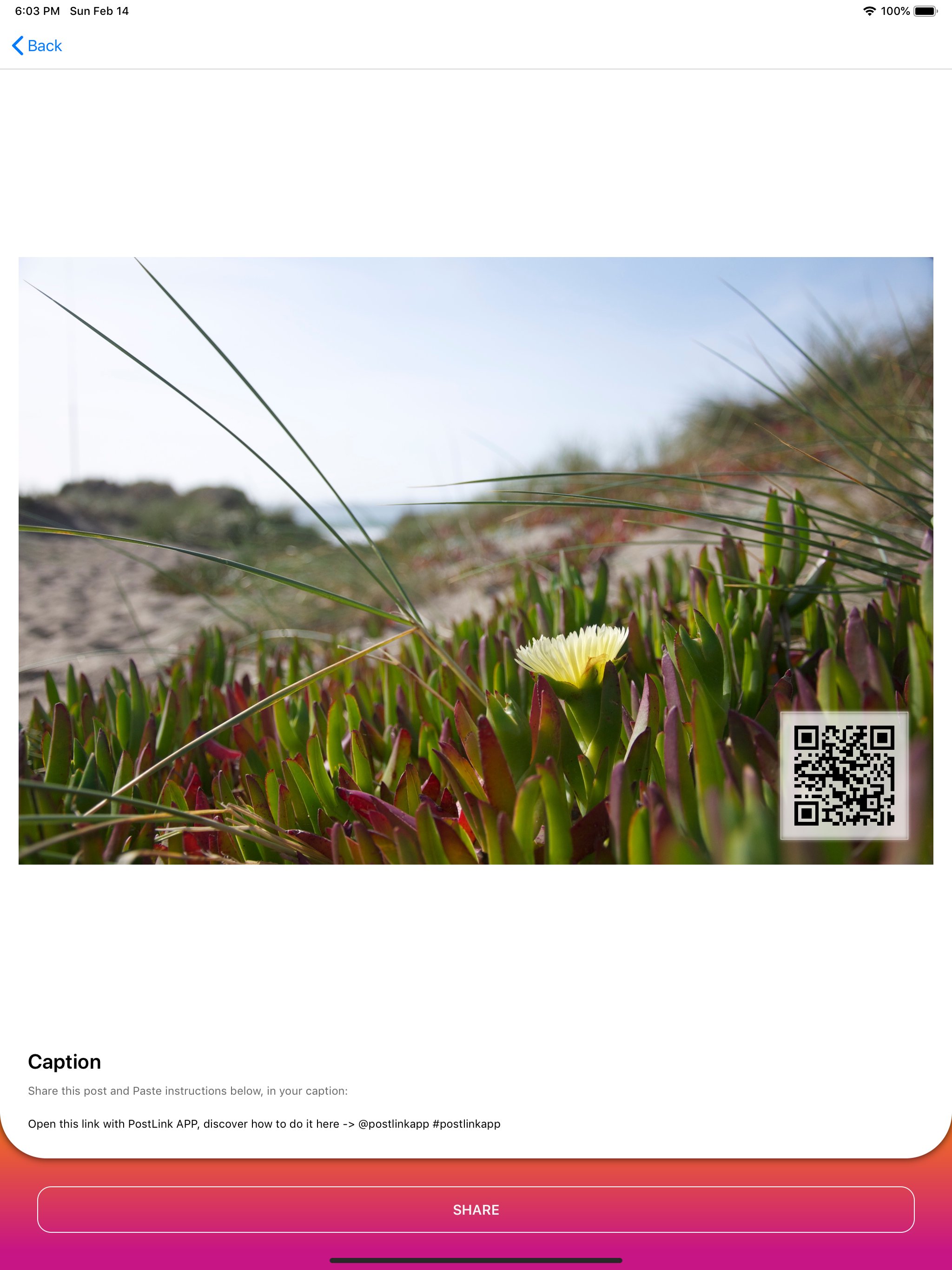 - Take a screenshot of the Post and Share > PostLink or any other QR reader app