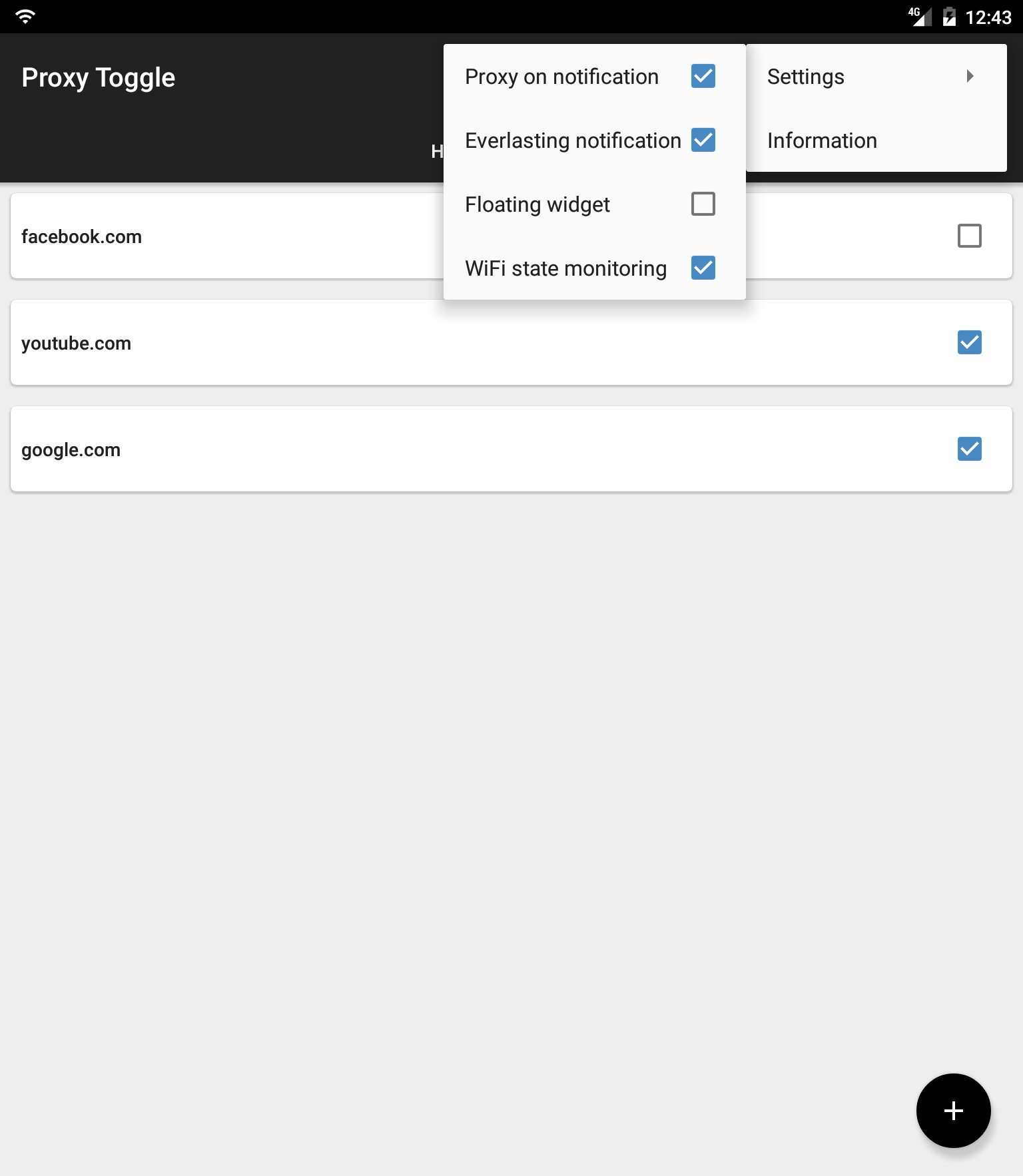 You will be able to turn on/off proxy by one click from App, Widget, ActionBar or from anywhere else with floating widget.