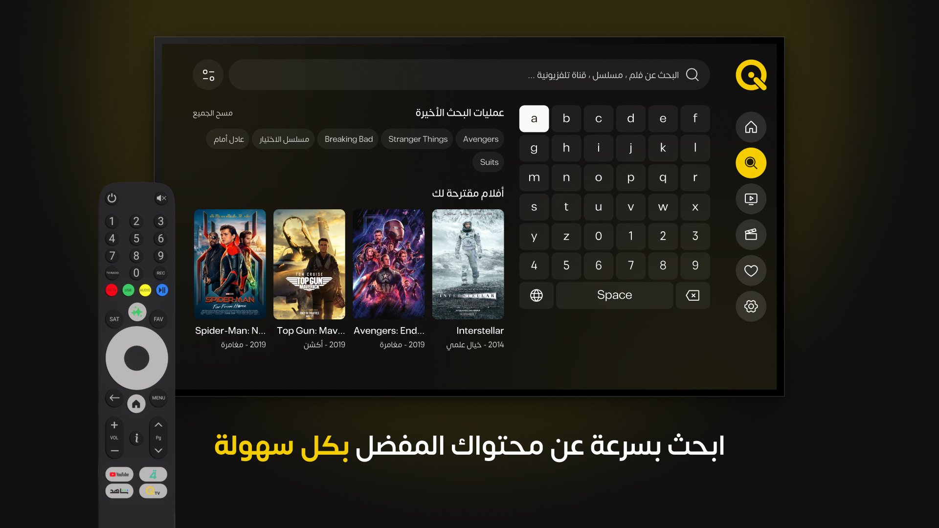 Discover a seamless viewing experience that combines live channels and premium digital content, including Arabic and international movies and series, in HD and 4K technology and with a modern, easy-to-use Arabic interface.
