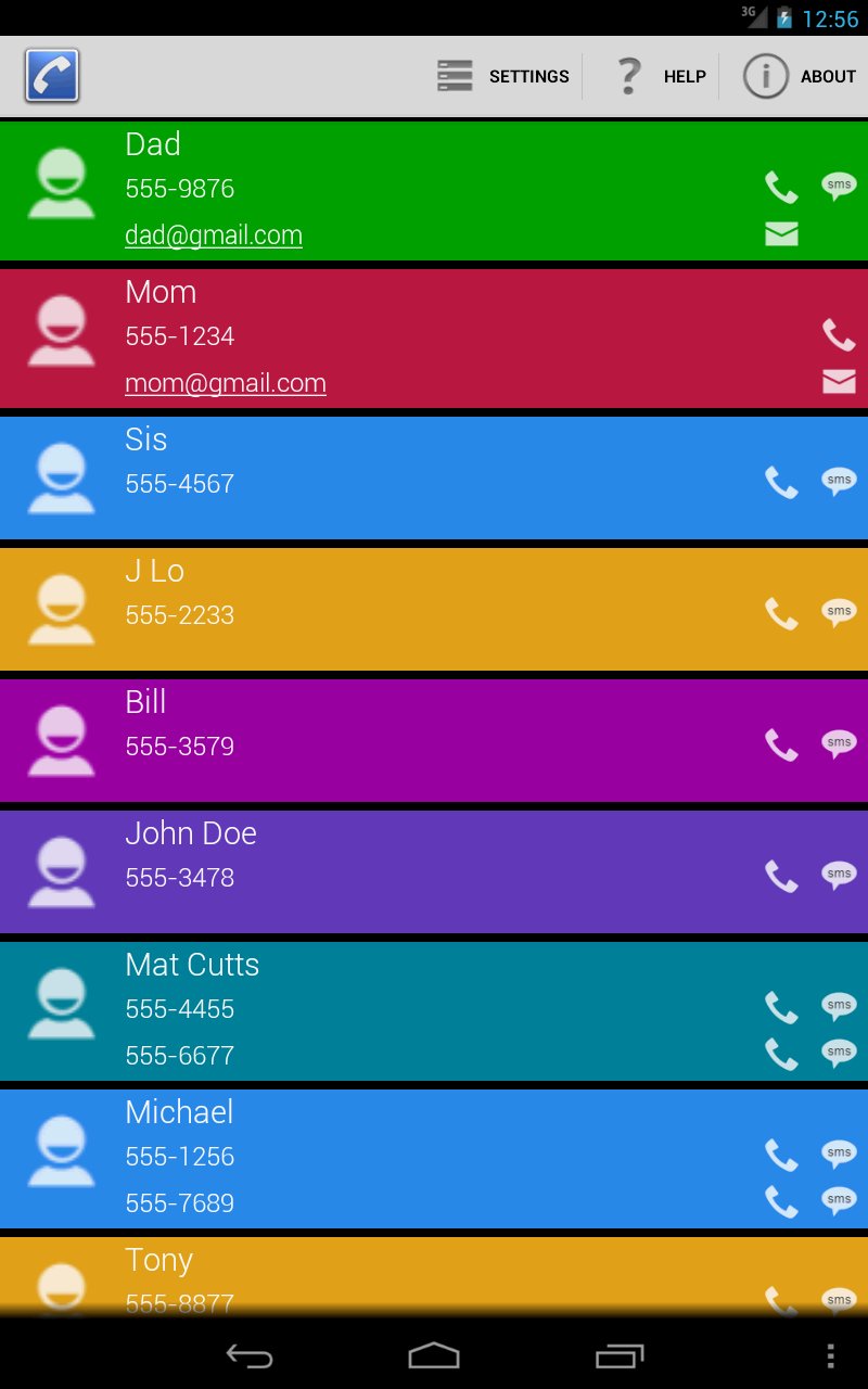 - Separate settings for every contact: different color style, enable/disable call, sms or email icons.