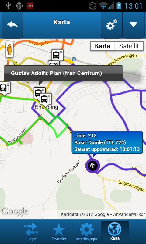 Se avgångsprognoser för alla hållplatser baserade på realtidspositionering av bussar.