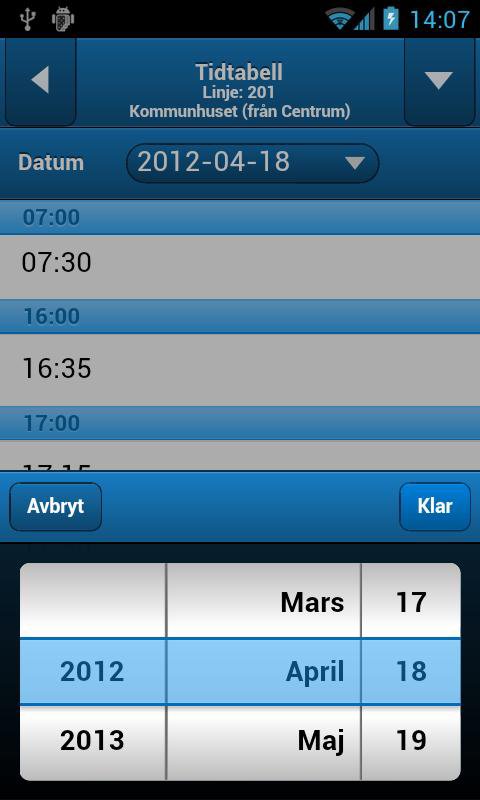 Du kan även se tidtabellen för valfritt datum på valfri hållplats.