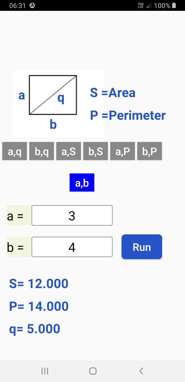 Rectangle Calculator helps you to quickly and easily calculate