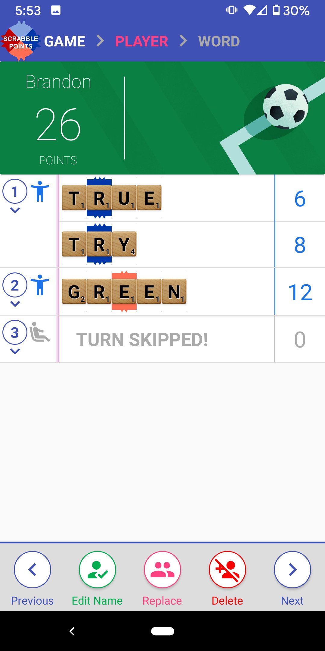 * Skip turns... a useful feature if you are playing with a timer and the player can not make a single word in given time