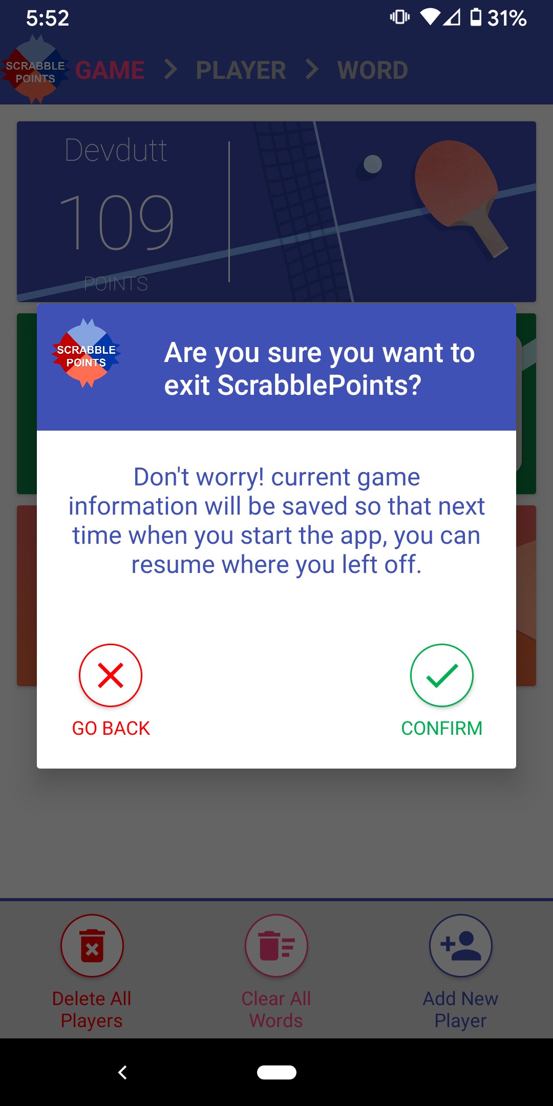 * App saves the scores, all words and their premium titles so that you can resume previous game in future.