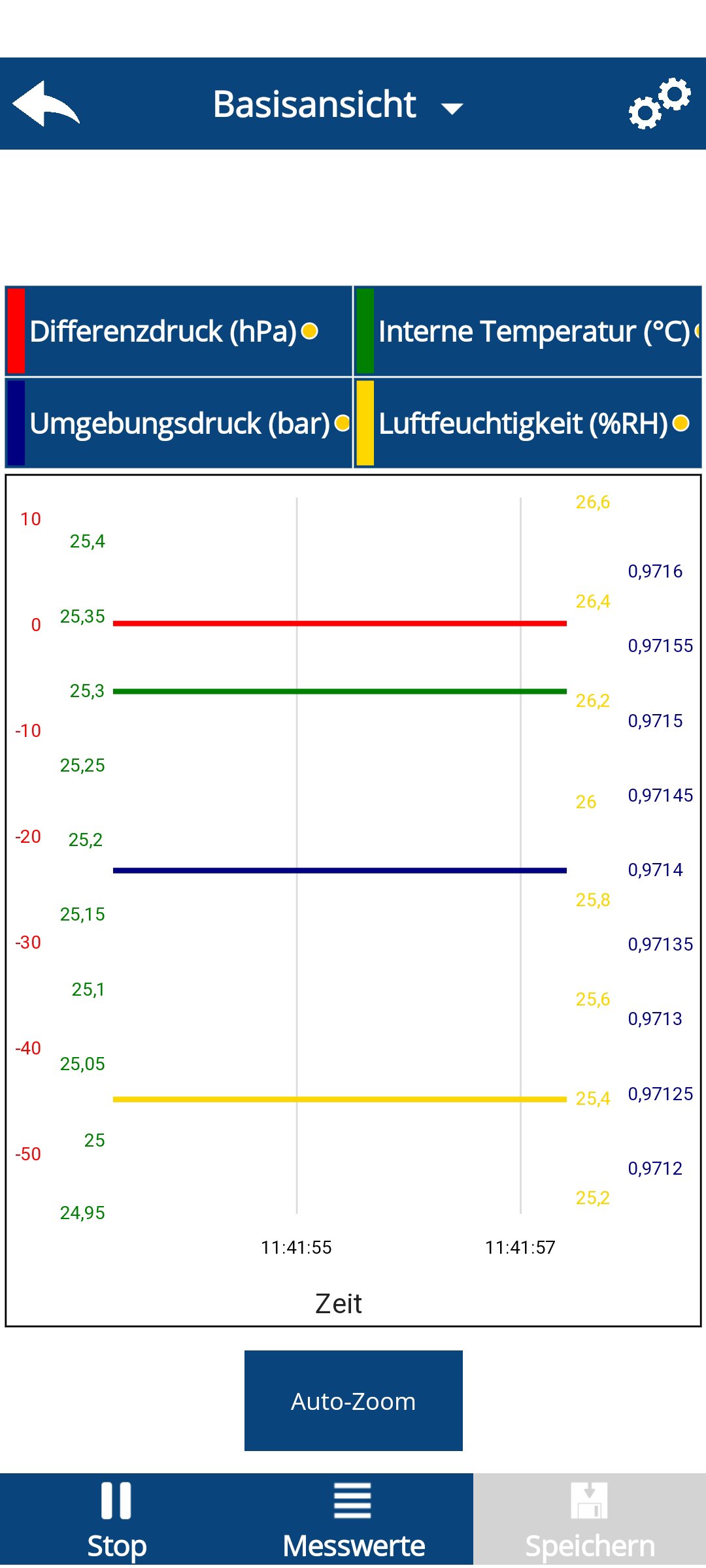 - Live screen: Individually configurable views (numerical and graphical) with all available measured values