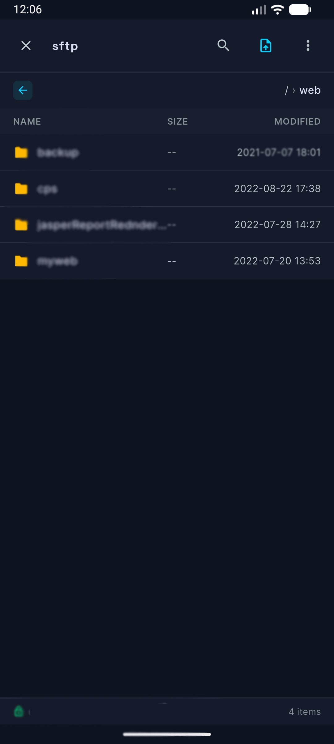 Need a log file or have to push a config? Same connection, switch to SFTP. Browse the directory tree, upload, download, rename, delete. SFTP transfers run in the background and progress shows up in your notifications, so leaving the app doesn't kill the upload.