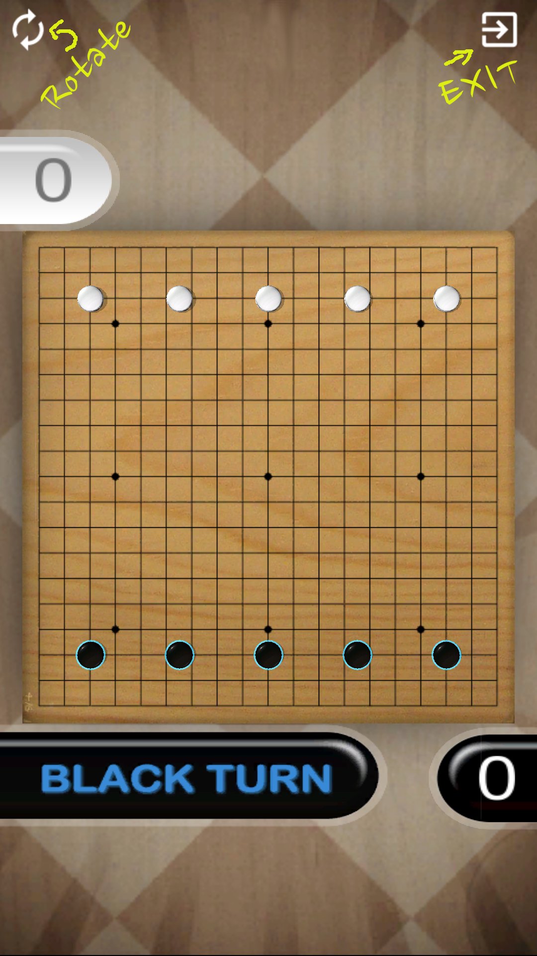 3. when your turn, hold one of your stone and swipe it to struck opponent's stone out