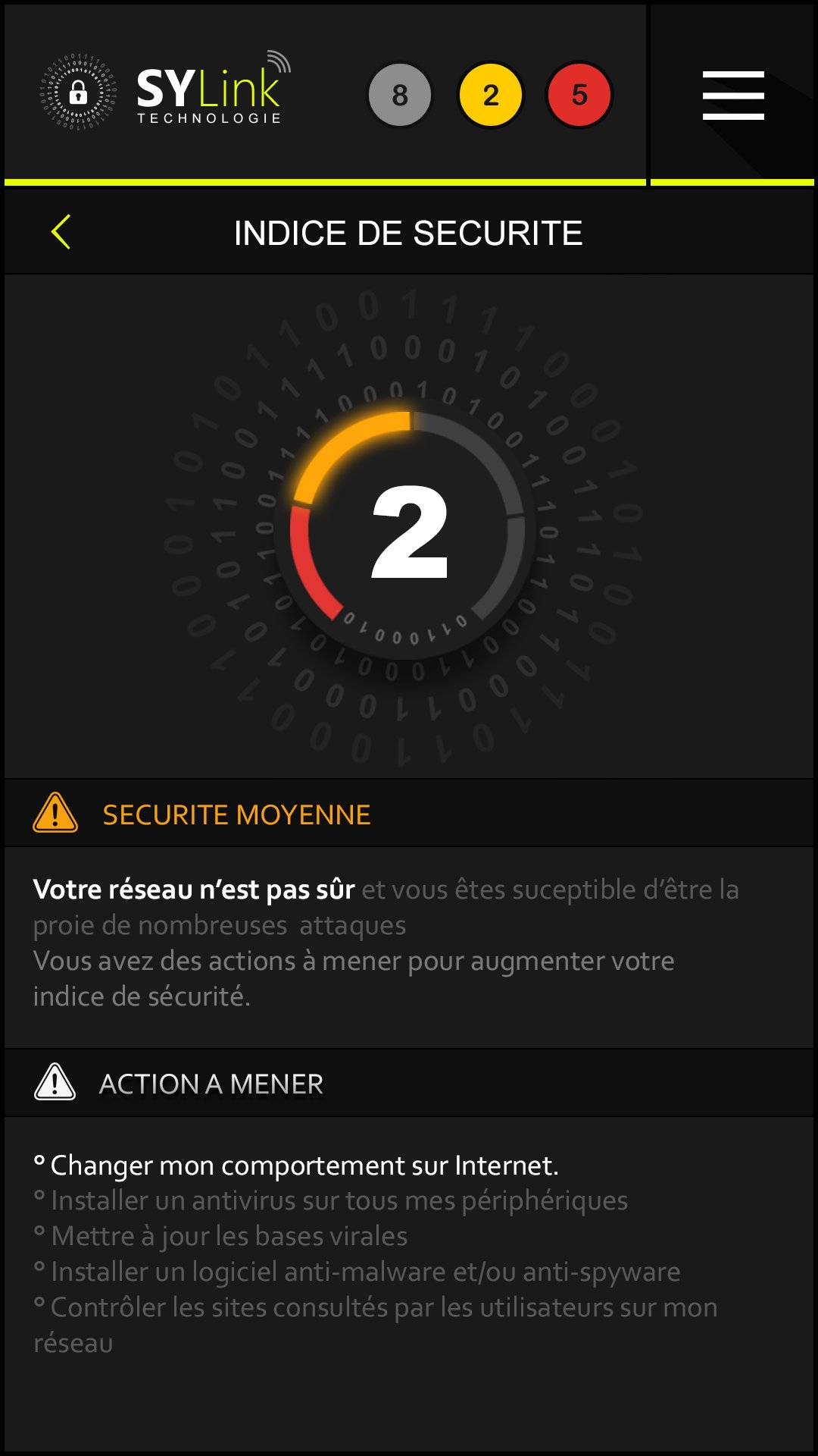 The SYLink Box gradually changes its color from white to red depending on the dangerousness of the attacks. Based on a complex deep learning algorithm, SYLink learns habits from your environment to always protect and never disturb.