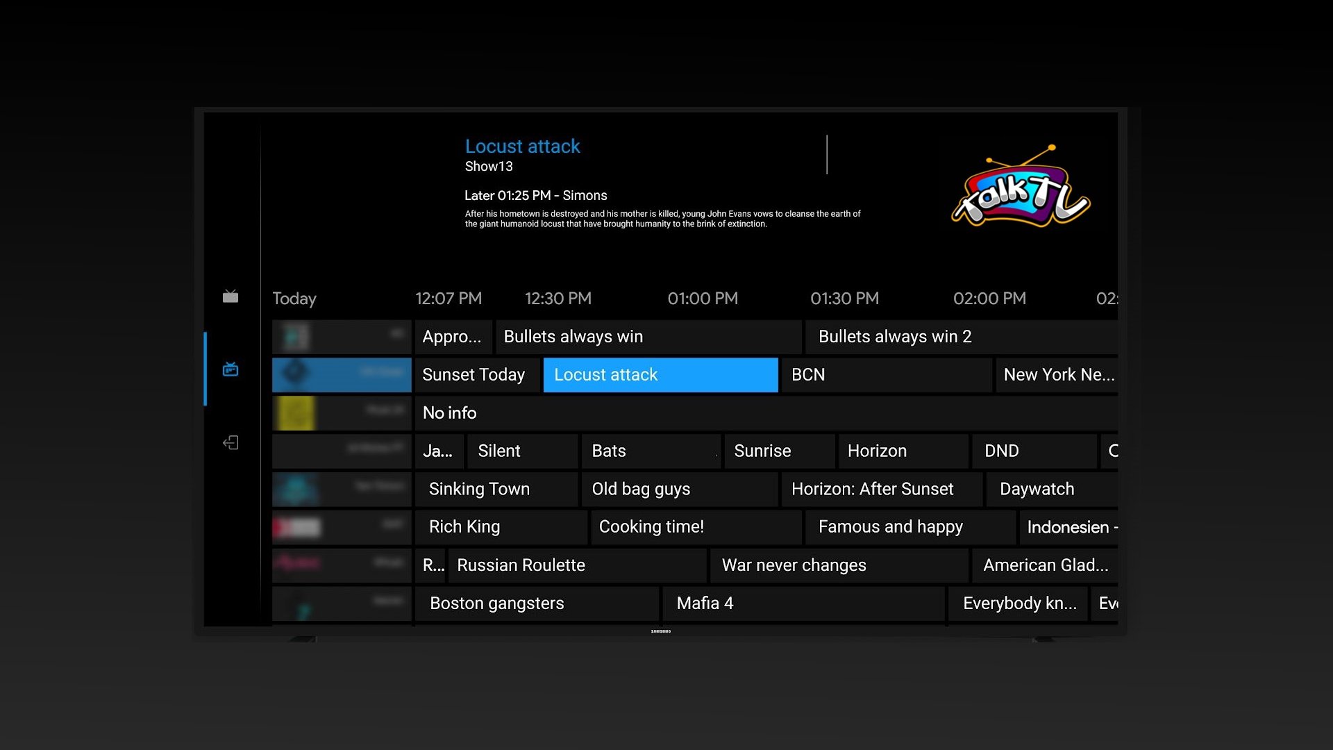 - TalkTV" does not supply or include any media or content except sample dummy link with Sintel ("Sintel" is licensed as Creative Commons Attribution 3.0 https://durian.blender.org/about/)