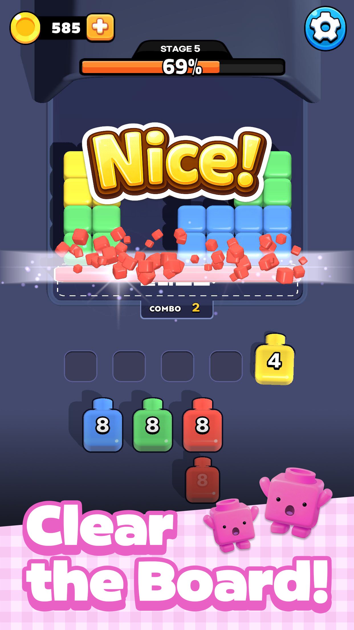 Shoot colored blasts at matching blocks before they pile up. Chain combos, clear the board, and feel that irresistible pop with every hit. You'll say "just one more level" — and suddenly you've cleared 10 more.