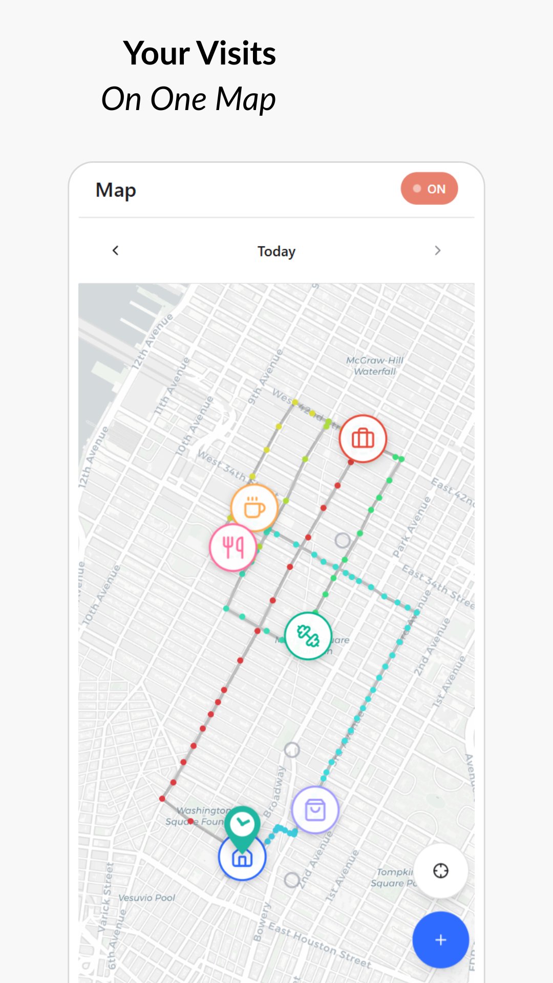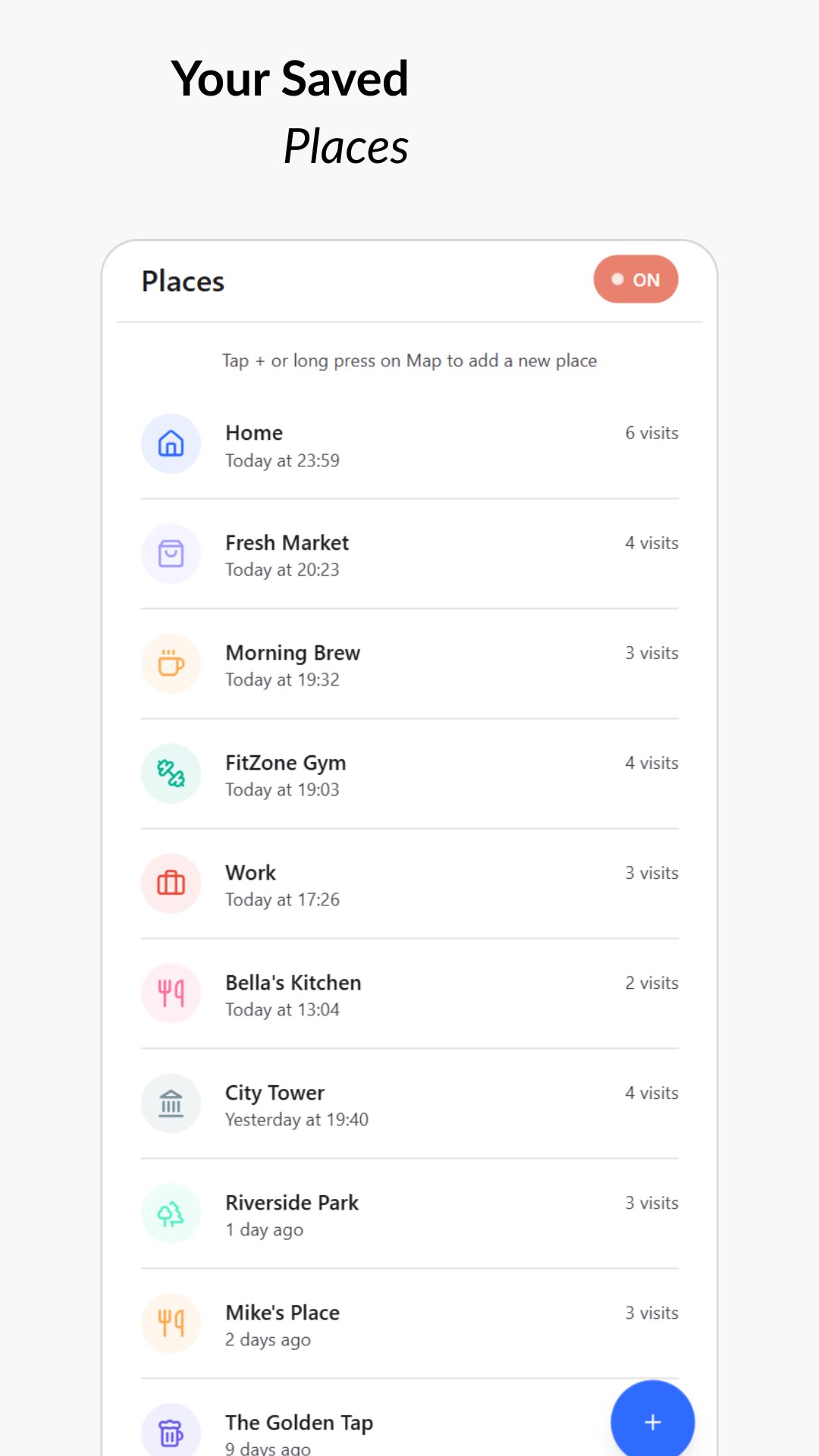 • Automatically tracks places you visit throughout the day