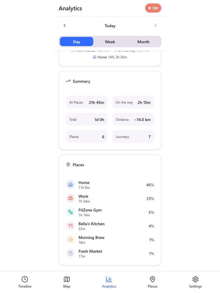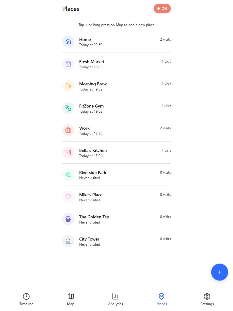 Track your movements automatically without opening the app. TimeLoc runs quietly in the background.