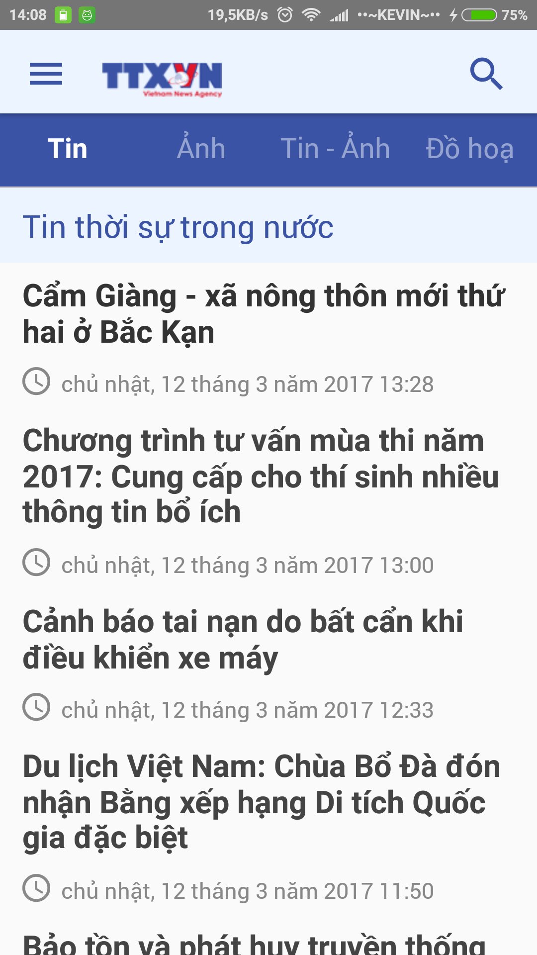 Reader application, view news, upload photos of Vietnam News Agency
