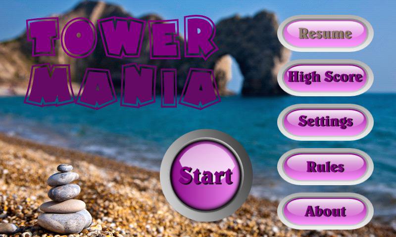 Tower Mania is an implementation of the well-known mathematical puzzle game, called Towers of Hanoi. It consists of three places and a tower, built from discs. The objective of the puzzle is to move the whole tower from the left to the right side. Only one disc may be moved at a time and no disc may be placed on top of a smaller disc.