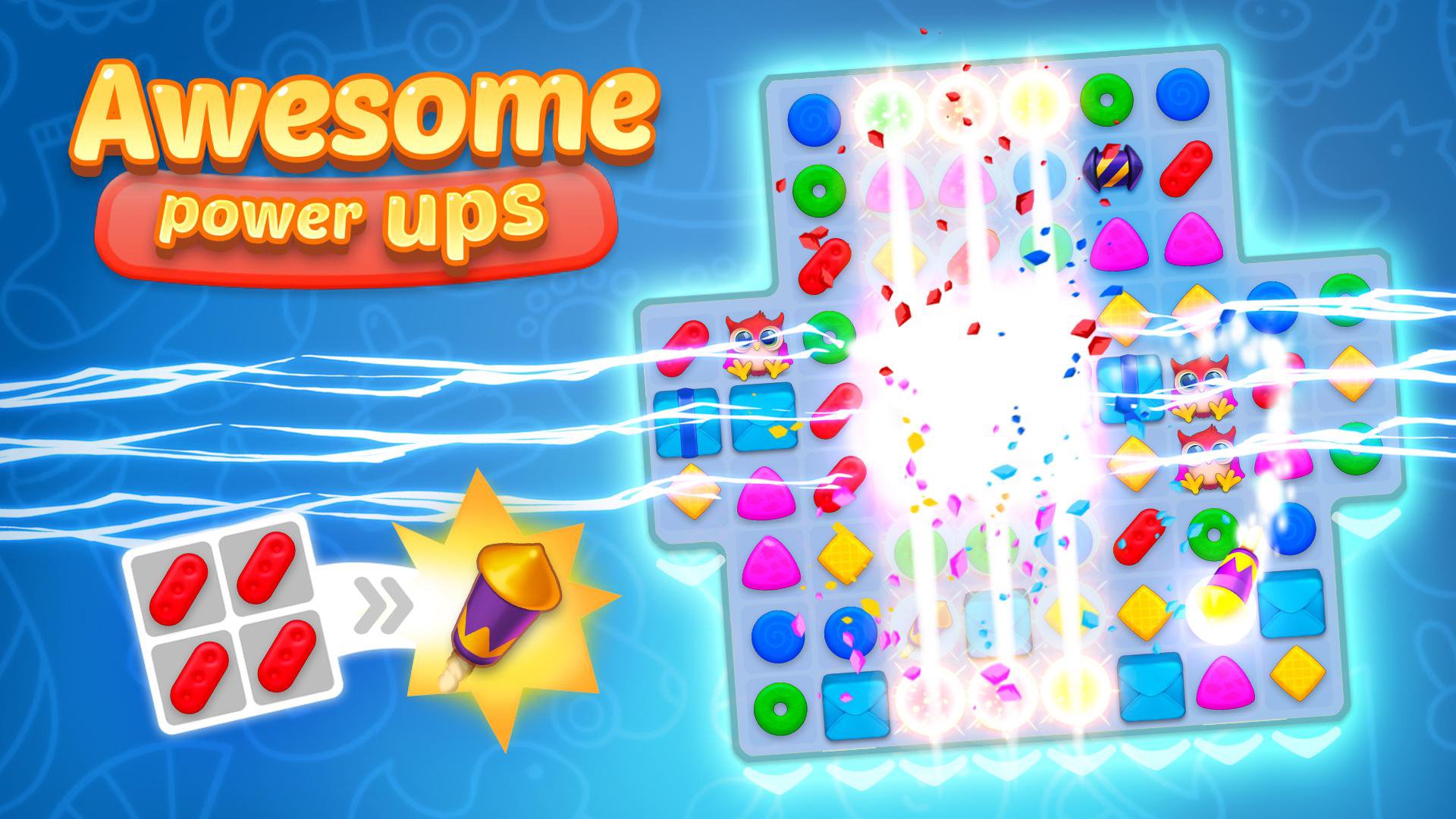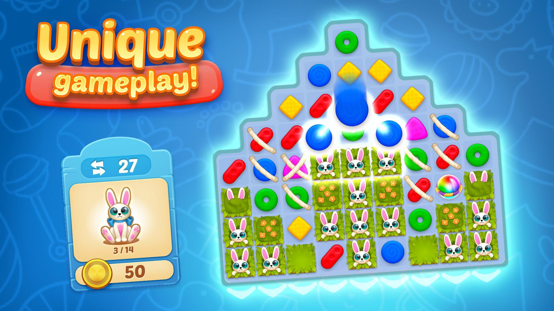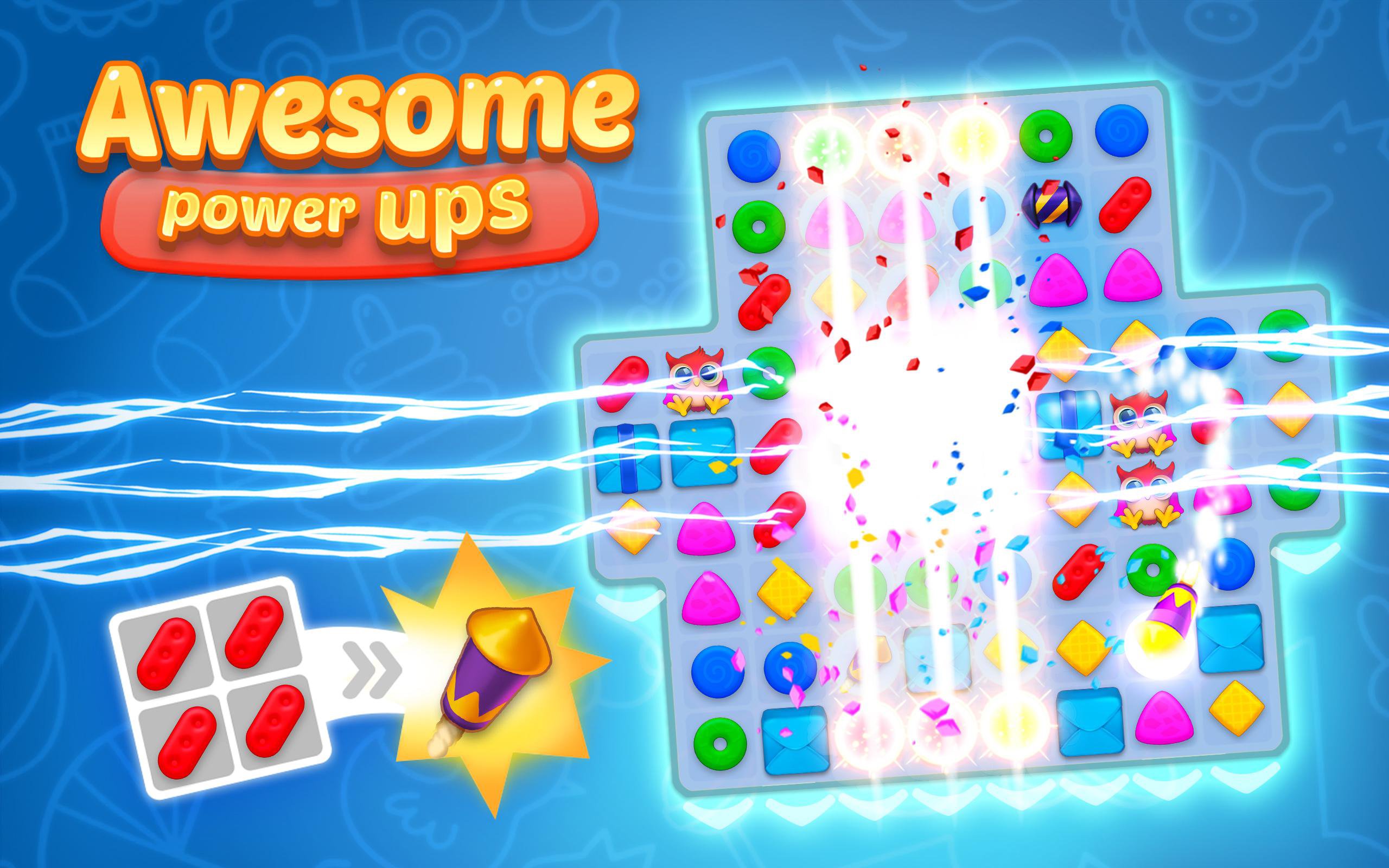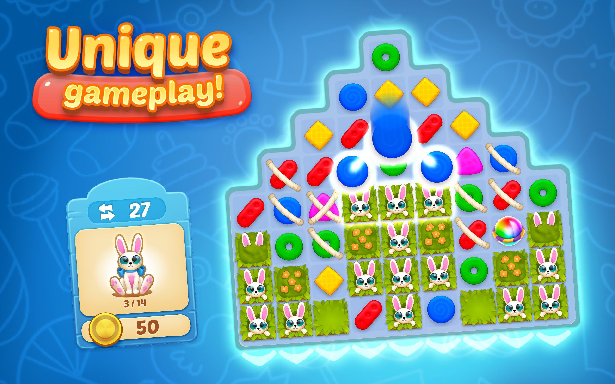 * Lots of unique match-3 levels for you to solve and have fun!