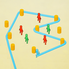 Run using the rope to trap red ones inside the rope but keep green ones outside the ropes.