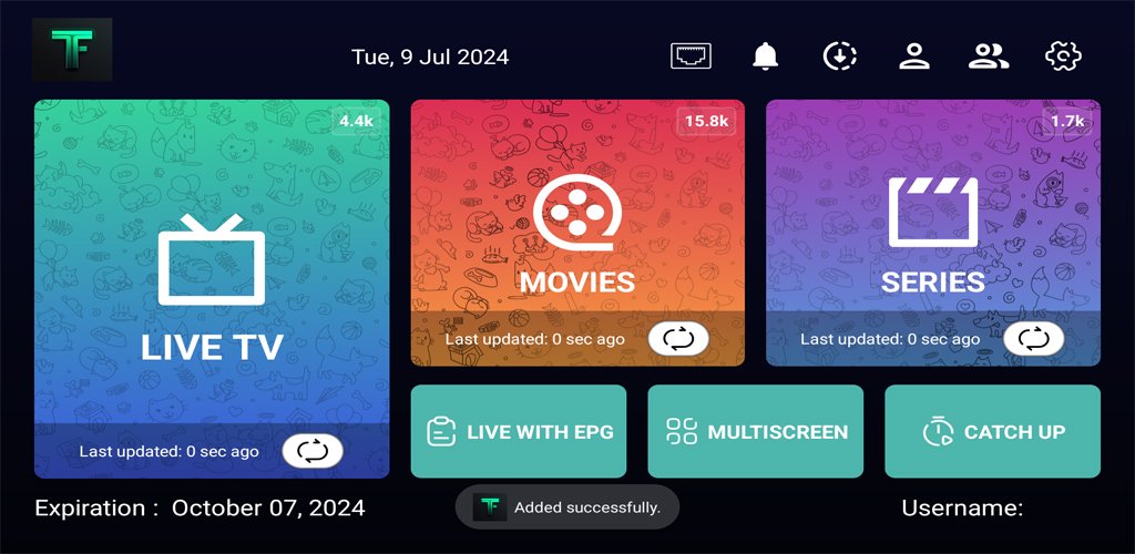 Tuflix aplicación multimedia para XU y listas M3U la aplicación para funcionar requiere que cada usuario cargue su propio contenido, mediante su proveedor de servicios o una lista m3u