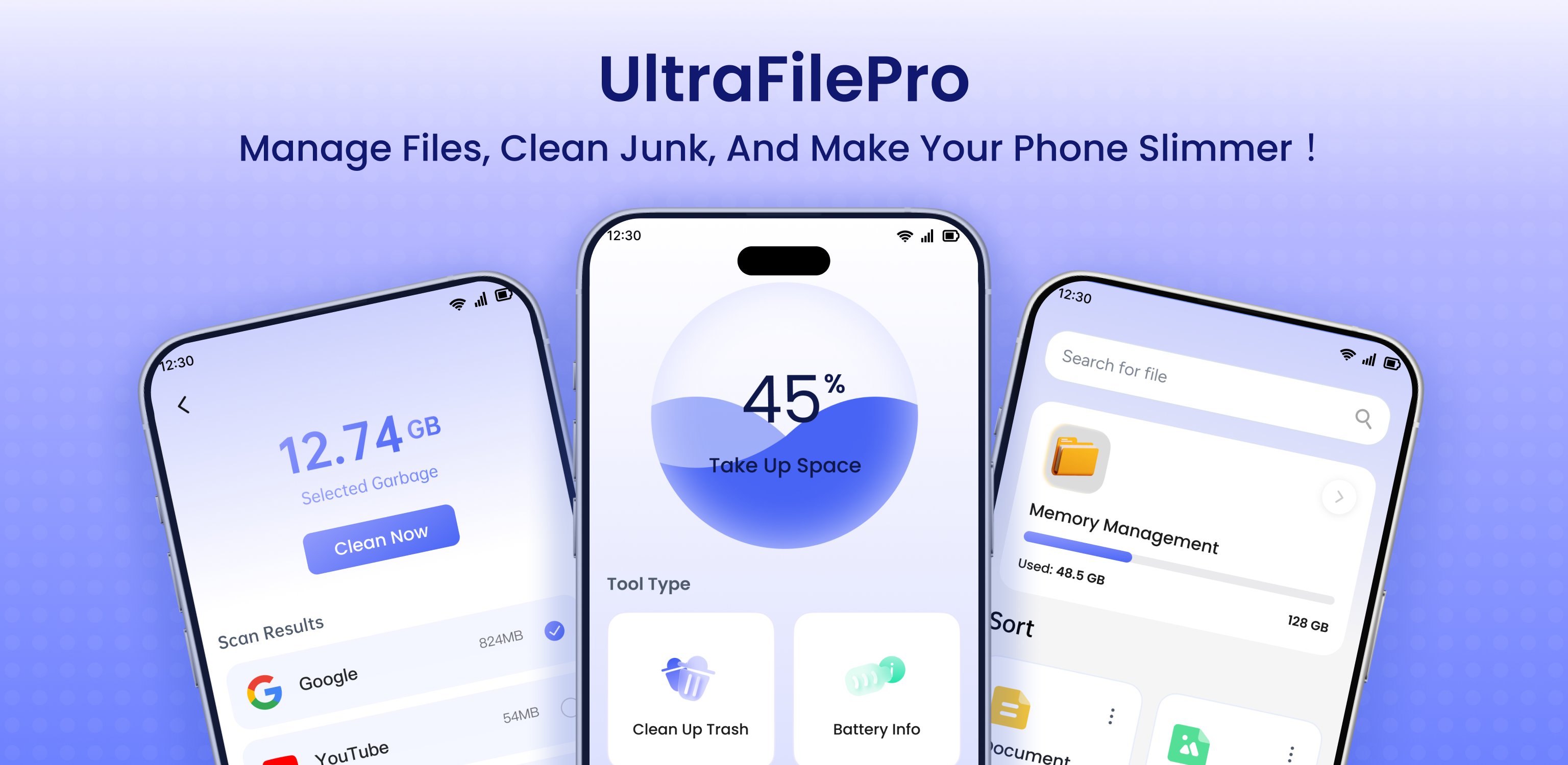 2. UltraFilePro has a mobile phone memory garbage cleaning function, which can quickly and efficiently clean up useless files and caches. This process can quickly free up valuable storage space, so that your phone has enough space to accommodate more exciting content.