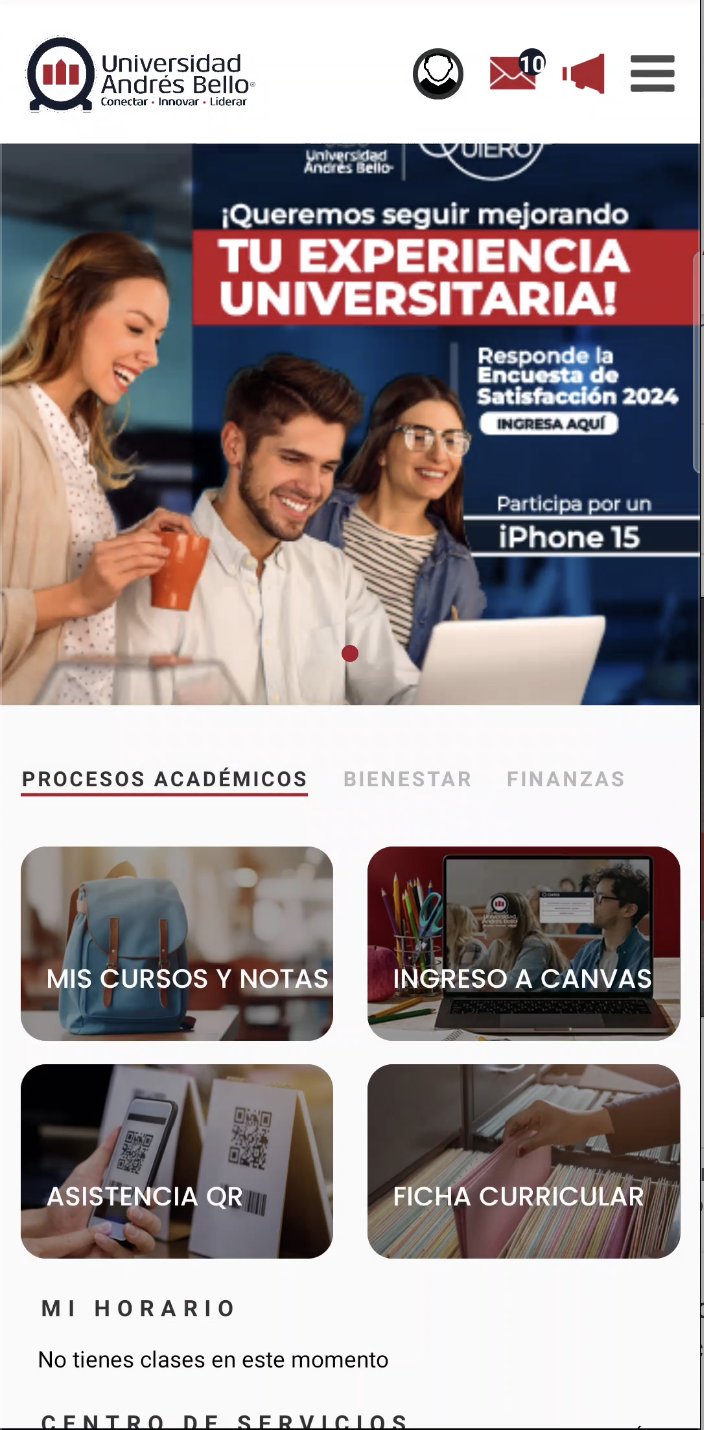 UNAB ESTUDIANTES es una aplicación que forma parte de la Universidad Andrés Bello, una iniciativa que tiene por objetivo optimizar los procesos de comunicación entre alumnos y docentes. Esta aplicación móvil fue creada para que puedas obtener toda la información que necesitas desde cualquier lugar y cuando tú quieras. UNAB ESTUDIANTES está disponible las 24 hrs del día, los 7 días de la semana, permitiéndote administrar tu tiempo de mejor manera.