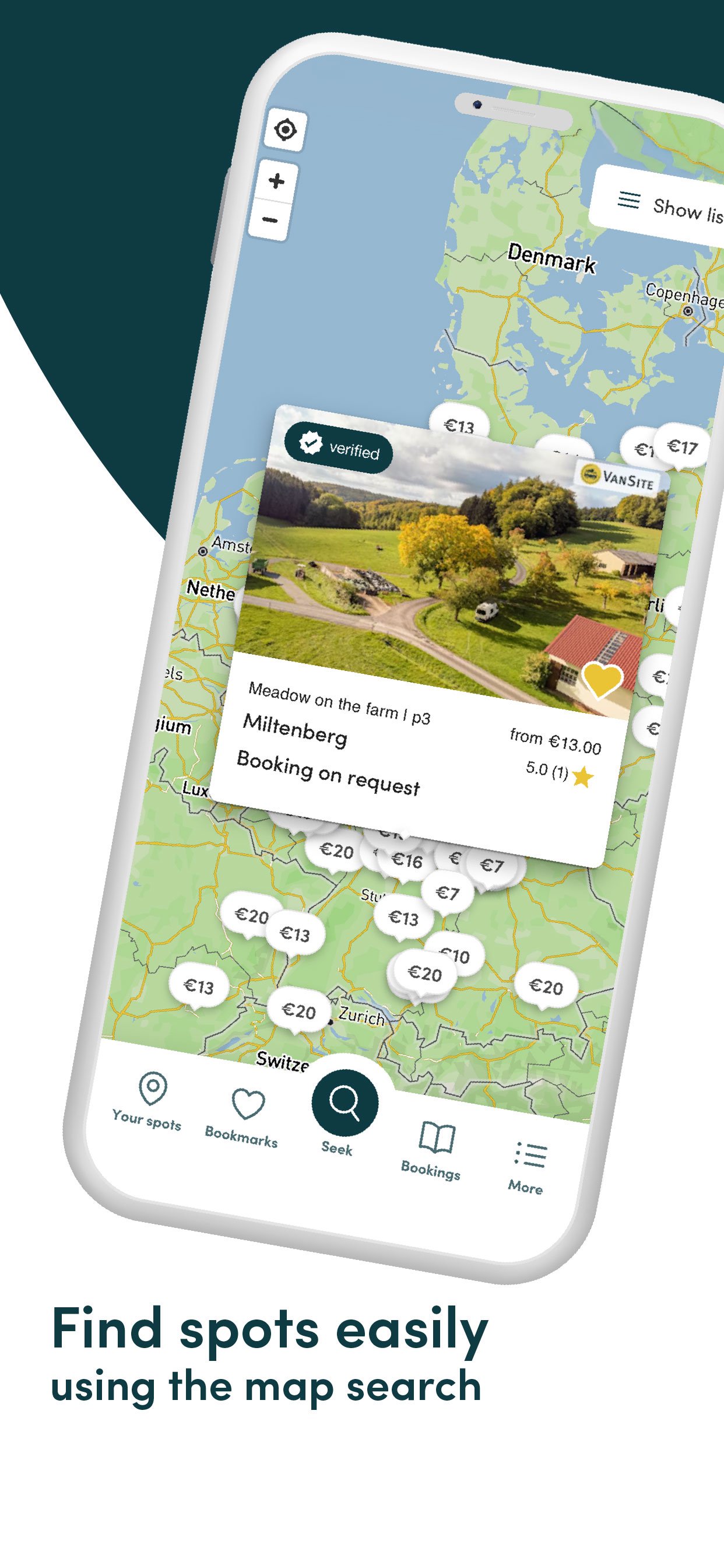From a simple green space at the edge of a yard to a spot by the lake with a shower and toilet, you will find your dream spot among hundreds of offers. All in just a few steps.