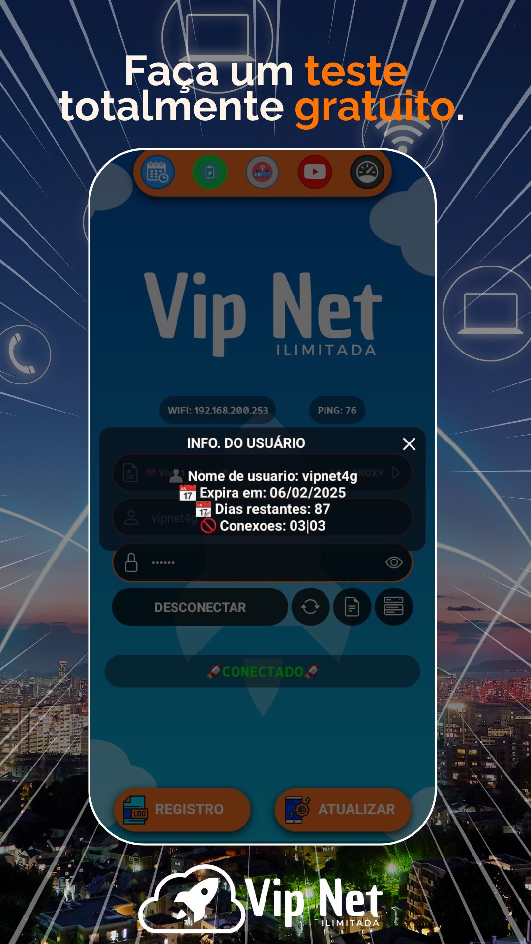 Enjoy unlimited internet and browse all month without worries! Vip Net Unlimited offers a stable, fast and secure connection. Download now and experience the best online experience without limits.