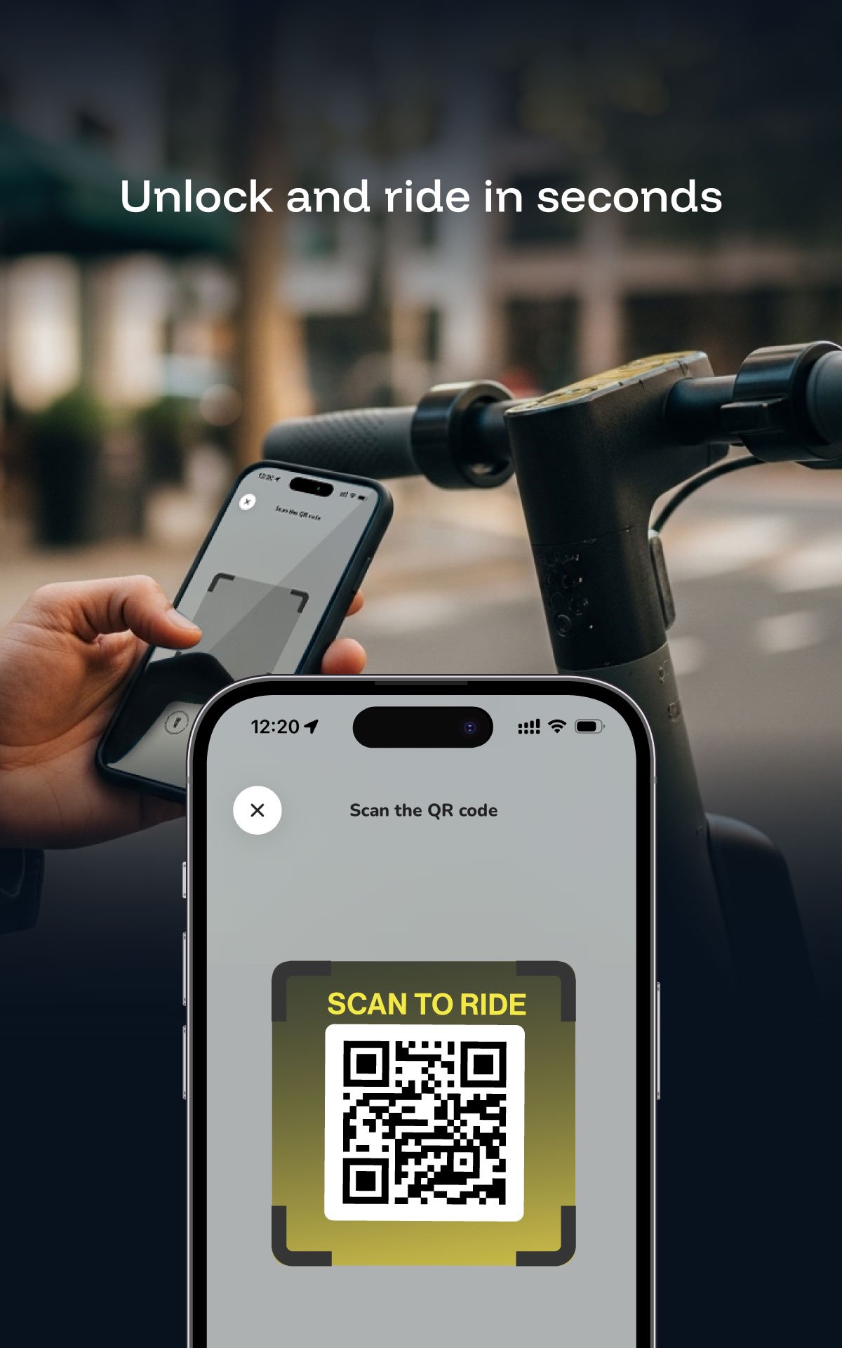 - Open the app to find nearby scooters.