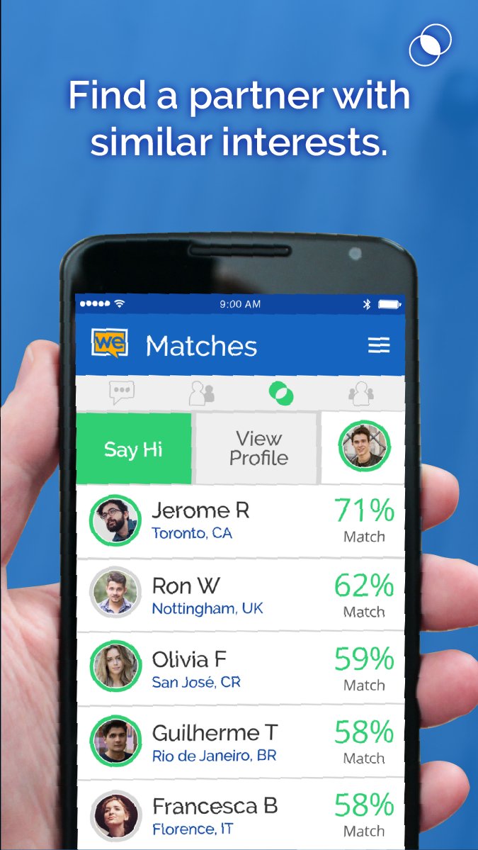 Let WeSpeke use its patented matching technology to find the best person for you to practice with - according to the languages you want to learn, the things you like to talk about, and the people with whom you feel most comfortable. Then it's up to you to chat with them - but don't worry: WeSpeke helps you out with useful hints, such as interests you have in common, and tools to keep the conversation flowing.