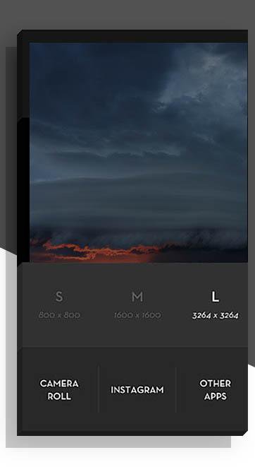 whitagram app can use one button in the center grabs a picture from your Android phone, either from your photo library or the camera.