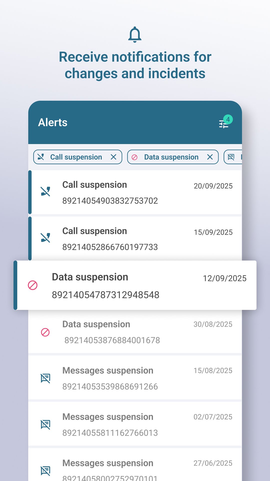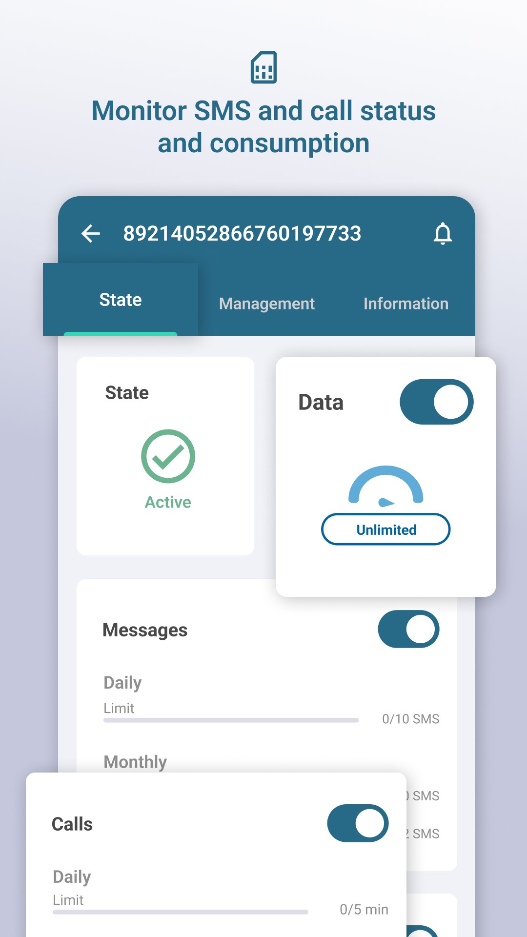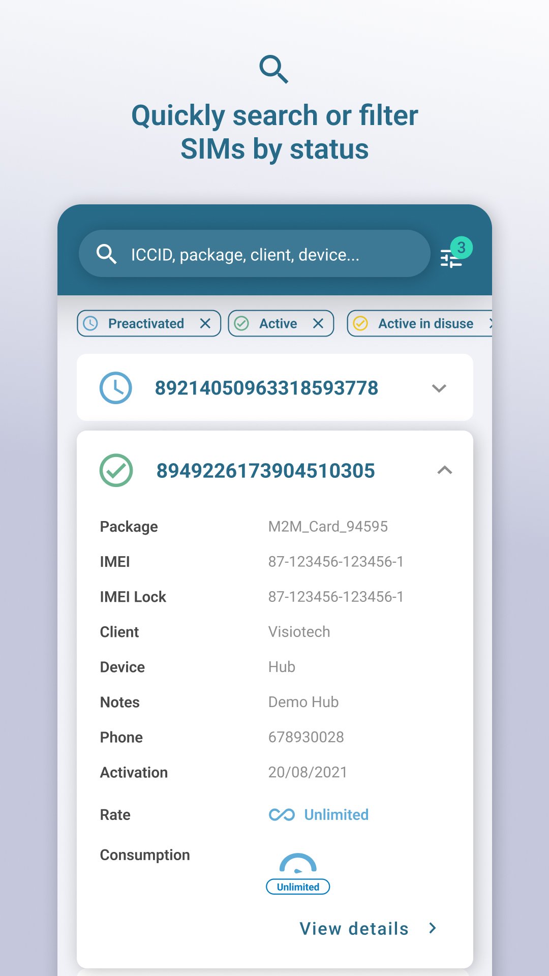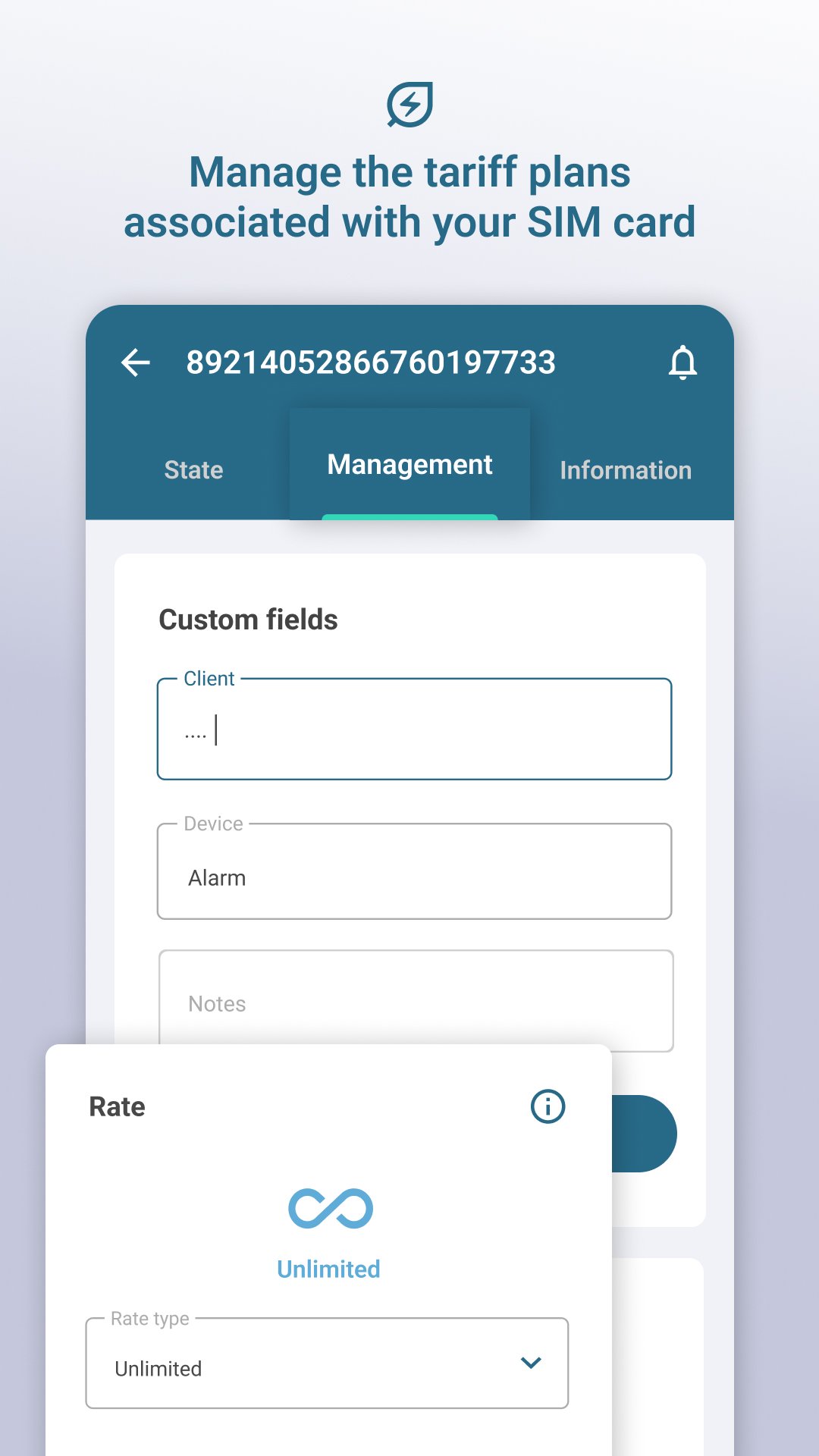 This app allows you to manage the SIM cards installed in your devices, whether they are used in low or high-consumption systems such as alarms, fire systems, CCTV, GPS solutions, routers, and more.