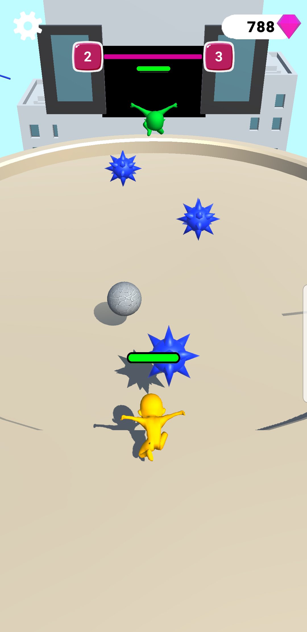 Use the ball to push your enemies and obstacles. You can push slow enemies easily. However, be careful about fast ones.