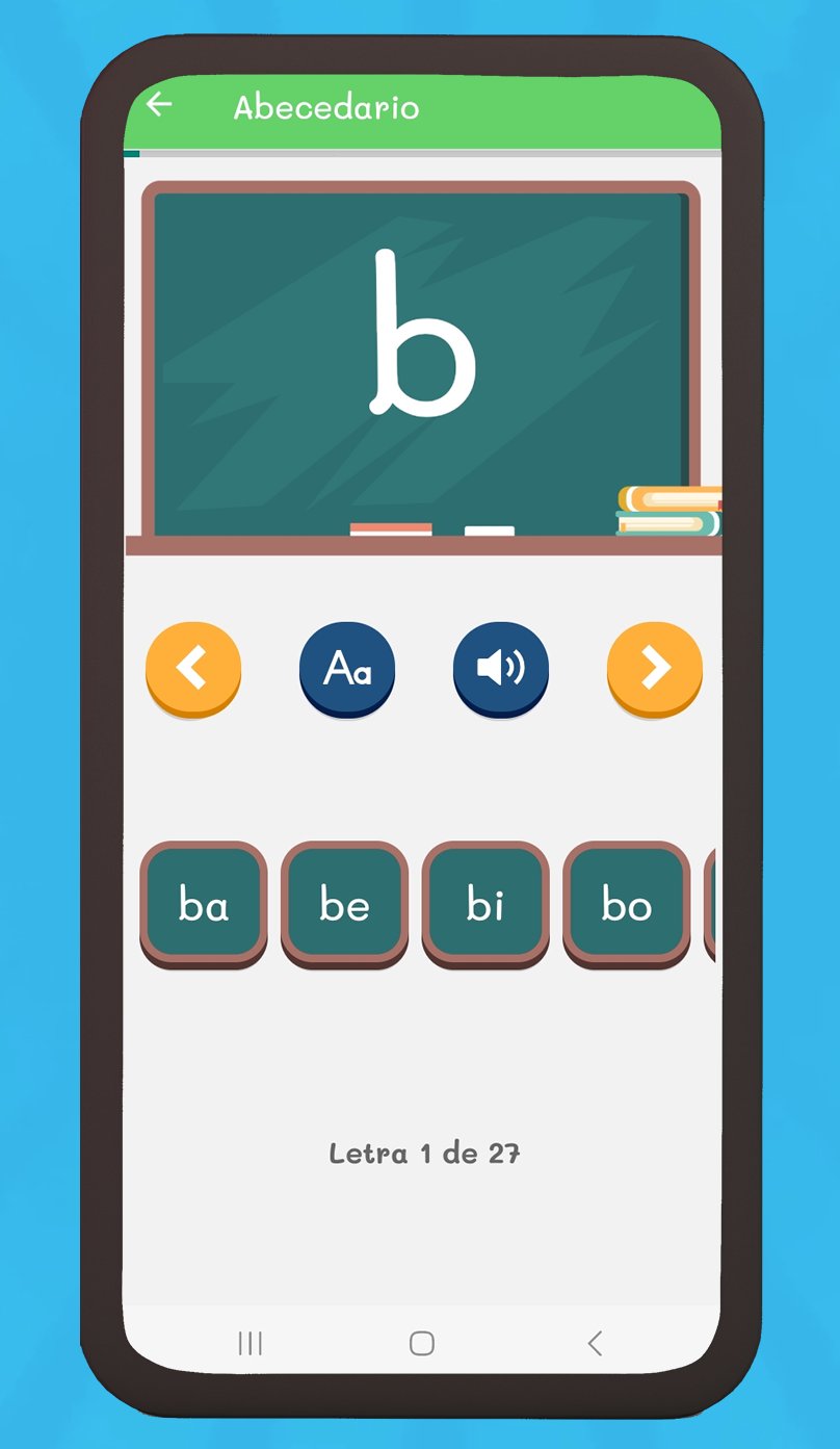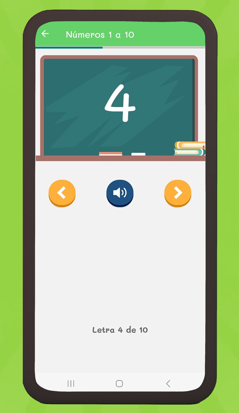 It contains lessons where children can listen to the vowels and the alphabet, repeat words, compare words with pictures and learn numbers, it also contains a memory game and audio stories.