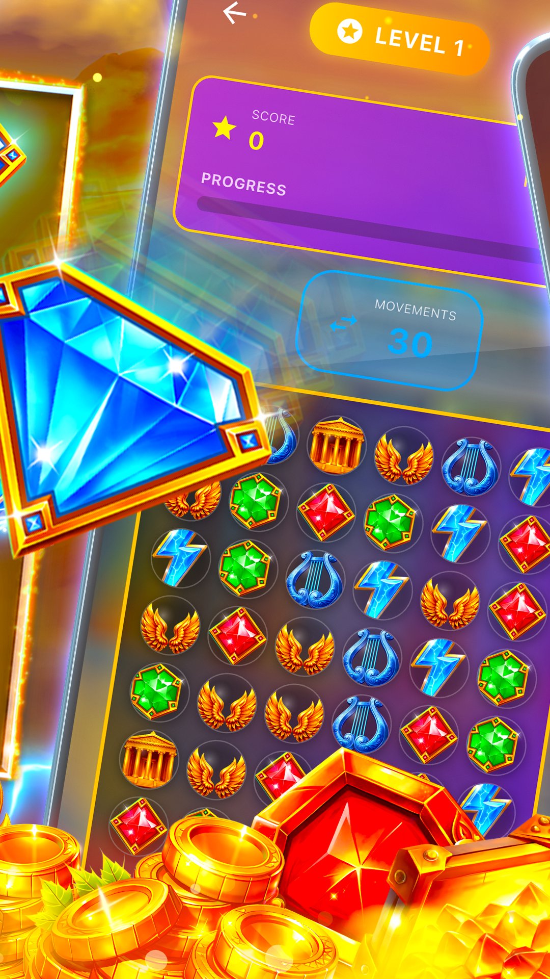 Dive into a colorful match-3 puzzle adventure full of shining crystals and satisfying combos! Swap